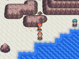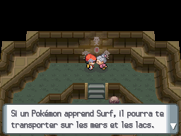 La Team Galaxie a asséché le lac dans le but de trouver un Pokémon légendaire censé y résider. Vous allez devoir leur botter les fesses... Le commandant se trouve dans la grotte au milieu du lac.
