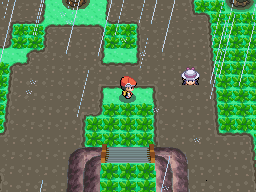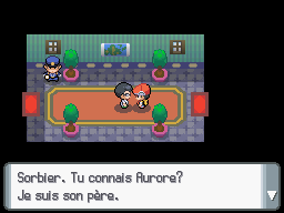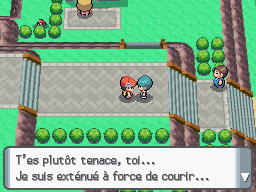 La route est ensuite assez courte. Juste avant d'arriver à la ville, un assistant du professeur Sorbier vous met à jour le Pokédex pour afficher les images des mâles et des femelles puisqu'il y a des petites différences.