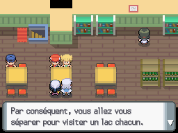 En sortant de l'arène, votre rival vient vous dire de le suivre à la bibliothèque de la ville qui se trouve au Nord-Ouest, allez le retrouver au deuxième étage avec le professeur Sorbier et son assistant.