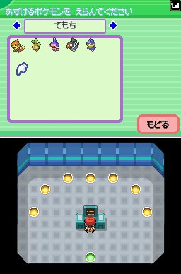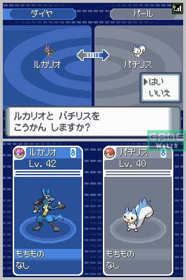 - Soit vous proposez un de vos Pokémon (en le sélectionnant dans votre équipe ou le PC), et on vous demande ce que vous voulez en échange (Pokémon, genre, niveau minimum). Si quelqu'un a fait une offre correspondant à ce que vous demandez, l'échange se fait immédiatement, mais dans le cas inverse, il se peut que vous ayez à revenir plus tard.