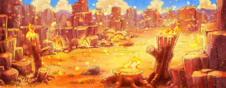 Les Plaines Brûlées sont un Camp de Secourisme qui permet d'accueillir jusqu'à 10 Pokémon différents, principalement de type