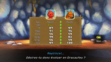 Comme n'importe quel jeu Pokémon, vous pouvez faire évoluer vos Pokémon pour leur faire gagner en puissance ! Et comme dans chaque jeu Pokémon Donjon Mystère, vous ne pouvez effectuer cette manoeuvre qu'une fois le scénario principal terminé (ici avoir vaincu Rayquaza et avoir stoppé la météorite).