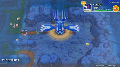 Description in-game : "Cette météo rare peut être observée au fond d'un certain donjon. L'eau inonde tout l'étage. Tous les Pokémon se font emporter par le puissant courant, quel que soit leur type. Tous les Pokémon exceptés ceux de type Eau souffrent du statut Demi-Vitesse." Détail(s) : - Pokémon emportés par le courant quel que soit leur type - Les Pokémon de type autre que Eau perdent en vitesse - Peut être déclenché uniquement par Kyogre lorsque vous le combattez au fond de la Mer Houleuse |