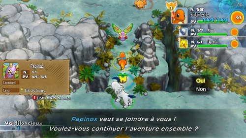 Les Pokémon battus à l'intérieur du carré rouge peuvent être recrutés