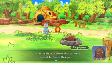 Après votre première journée de travail à accomplir les missions de la Poste Bekipan, vous vous en allez vous reposer. Le lendemain, toujours aucune demande n'est disponible, donc vous savez ce qu'il vous reste à faire. Mais peu de temps après, vous sentez une secousse et un Taupiqueur apparaît ! Ce dernier s'amuse à faire des trous, jusqu'à ce qu'il se rende compte qu'il s'est perdu !