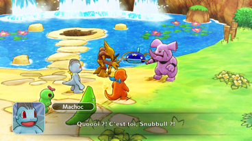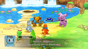 Lors de votre reprise en tant qu'équipe de secours, vous recevez la visite de Chenipan et de Chrysacier. Ces derniers vous racontent qu'il se passe quelque chose d'étrange avec Snubbull, qu'il n'est pas comme d'habitude. Vous décidez alors d'aller le voir près de l'étang de Barbicha, où vous trouvez Alakazam avec un autre Pokémon que Snubbull.
