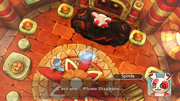 Condition de déblocage : terminer la Grotte du SoleilUn jour, vous verrez un Spinda s'effondrer près de chez vous. Une fois reposé, celui-ci vous expliquera qu'il était à la recherche du Pokémon Mirage et qu'il n'a plus la force de continuer. Il décide alors de vous donner la Plume Diaphane. Il s'installera temporairement près de l'étang de Barbicha par la suite.