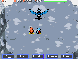 | Tout comme Sulfura, il vous faudra infliger des statuts à Artikodin pour l'empêcher d'attaquer efficacement, car il aura moyen de vous mettre K.O. rapidement avec Poudreuse, touchant autant votre partenaire que vous-même ! Il reviendra au niveau 53 avec les mêmes PV après avoir vaincu Rayquaza. | ||||