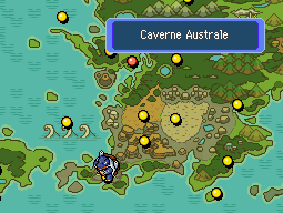 La Caverne Australe est un donjon qui se débloque automatiquement après avoir vaincu Rayquaza et en possédant la Zone d'Accueil "Grotte Rocheuse", recevable en récompense de mission.