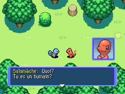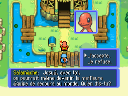 Votre choix étant fait, il ne vous reste plus qu'à choisir qui sera votre partenaire pour vos aventures ! Notez que votre coéquipier ne peut pas être du même type que vous. Si vous êtes un Salamèche, vous ne pourrez pas avoir Héricendre ou Poussifeu comme partenaire par exemple. Une fois choisi, vous arrivez enfin dans le Monde Pokémon !