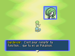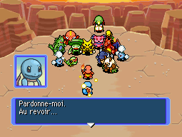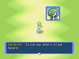 Pendant que votre partenaire et les autres font la fête sur la colline, vous avez droit à la dernière visite de Gardevoir. Elle vous remercie d'avoir sauvé le monde Pokémon et vous prévient alors qu'il est temps de faire vos adieux, car vous devez rallier votre monde.