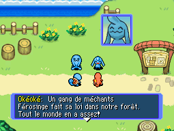 Le lendemain matin après votre réveil, vous avez droit à la visite peu commode d'un duo tout bleu. Ces derniers vous annoncent qu'ils ont déposé une demande sur le panneau près de la Poste Bekipan. En y allant, vous découvrez une lettre d'Okéoké. Ce dernier arrive alors avec son ami Qulbutoké pour vous expliquer qu'un gang de Férosinge fait la loi dans leur forêt, nommée Bois Brouhaha. Ces derniers sont très agressifs et s'en prennent à tout le monde. Vous décidez alors de prendre les choses en main.