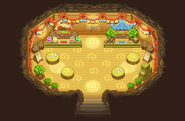 Le Café Spinda est une nouveauté d'Explorateurs du Ciel qui permet d'avoir accès à deux nouveaux stands : le Bar à Jus Spinda et la Bourse d'Échange.