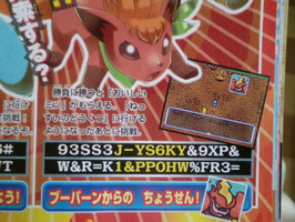 Ce sont les premières Lettres Miracle S données après la sortie du jeu.| Image du CoroCoro | Code Lettre Miracle S | Détails |