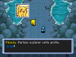 Vous arrivez à la cascade et en tentant de la traverser, vous avez la vision d'un Pokémon sautant à travers pour se retrouver dans une grotte derrière. Vous faites de même, et parvenez au donjon Grotte Cascade.