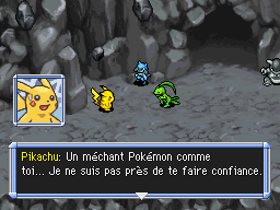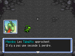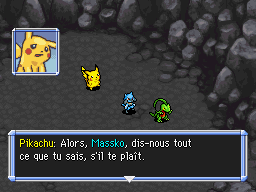 Vous parvenez, avec Massko, à atteindre l'extérieur. Un monde noir et figé dans le temps. Mais Massko est un méchant Pokémon et vous ne pouvez pas le suivre éternellement ! Malgré tout, comment se fait-il que la planète soit tout de même paralysée alors que les Rouages du Temps sont remis en place dans le présent ? Que de questions et si peu de réponses. Engagez-vous simplement dans la Grotte Abîme.