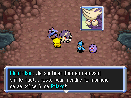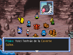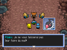 Vous rejoignez Pijako, et des Pokémon sauvages vous tombent littéralement dessus, depuis le plafond ! Pijako s'interpose pour vous protéger, et vous devez battre Kabutops et deux Amonistar.