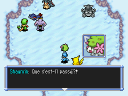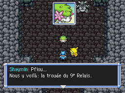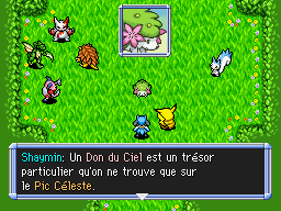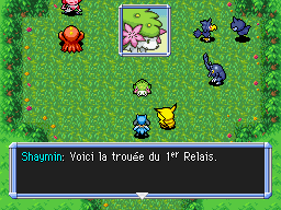 Troisième Relais : Shaymin vous explique ce qu'est un Don du Ciel. Parlez aux Pokémon autour de vous pour recevoir un Don du Ciel.
