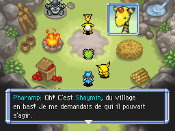 Une fois arrivé au Village Shaymin, vous faites la rencontre d'une Shaymin qui vous propose de vous accompagner dans votre ascension de la montagne. Elle va aussi vous aider à découvrir le trésor qui se trouve à son sommet.