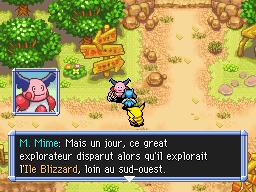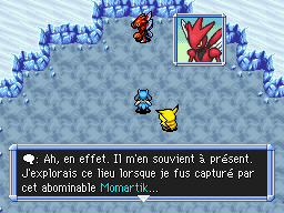 Parlez à M. Mime devant le Café Spinda. Il va vous parler de Cizayox, perdu sur l'Ile Blizzard.