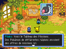 Après un réveil en fanfare par la voix tonitruante de Ramboum, et la récitation des devises de la Guilde (Pas de travail, pas de médaille ! Les froussards, au placard ! Garde le sourire pour réussir ! ) Pijako vous confie votre première mission : récupérer la perle égarée par Spoink. Vous apprenez au passage que s'il y a tellement de méchants Pokémon, c'est parce que l'écoulement du temps est perturbé.