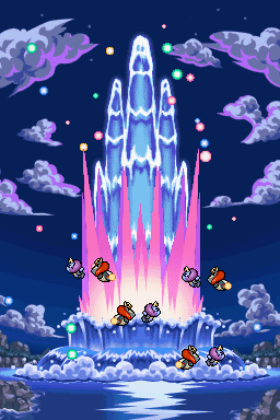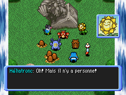 Au sommet du donjon, vous entendez à nouveau le rugissement et quelque chose se rapproche. Pendant ce temps, la Guilde arrive à la statue de Groudon et Grodoudou a disparu ! L'Equipe Crâne est mal en point et gît dans un coin.