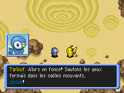 Tandis que tout le monde est envoyé continuer de chercher les Rouages du Temps, vous avez une idée. Vous repartez vers la Grotte Sables Mouvants (d'abord nommée « Désert » dans la liste des donjons). Vous sautez dans les sables mouvants et accédez au donjon.