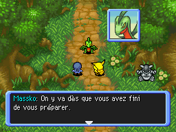 Durant la nuit, vous discutez avec Massko du Cri Dimensionnel, de votre amnésie, et de votre transformation en Pokémon. Tout est lié. Vous décidez d'aller avec Massko et votre partenaire chercher les Rouages du Temps pour empêcher la Paralysie de la Planète.