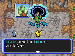 Une fois battu, Noctunoir tente de vous attaquer encore une fois mais vous vous défendez. Puis votre partenaire va démarrer le Vaisseau Arc-en-Ciel. Vous apprenez que lorsque le temps sera modifié, vous disparaitrez car vous venez du futur ! Peu importe pourtant, il faut remettre le temps en marche. Massko emmène Noctunoir avec lui dans le futur, et vous laisse la mission de remettre les Rouages du Temps en place.