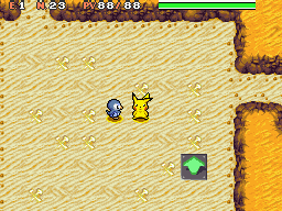 Vous partez le lendemain. Le donjon est principalement rempli de Pokémon Sol et Roche et vous rencontrerez parfois une Tempête de sable qui baissera régulièrement la vie de vos explorateurs.