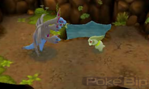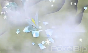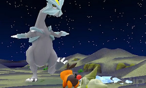 Soudain, Kyurem surgit du ciel et congèle Trioxhydre, puis le fait voler en éclats ! C'est ensuite votre tour : il vous balaie de son souffle puissant et s'apprête à vous écraser comme un vulgaire vermisseau !
