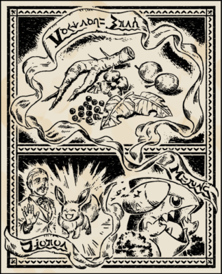 Son nom s’inspire de celui d’une créature étrange évoquée dans un mystérieux ouvrage appelé le Livre Écarlate. On raconte qu’il déploie sa longue fourrure pour voleter dans le ciel nocturne.