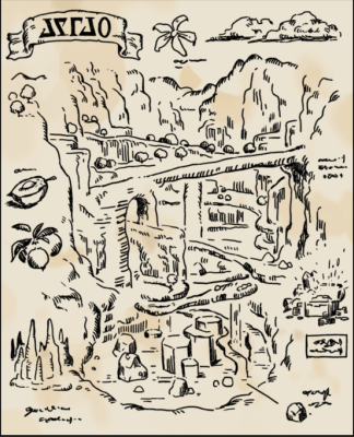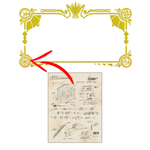 En descendant, les aventuriers trouvèrent une plaque, faite d’un acier inconnu et inaltérable. Les symboles gravés sur cette plaque restent encore aujourd’hui un mystère. Comme pour le symbole d’au-dessus, il est possible de le retrouver sur les logos des jeux.