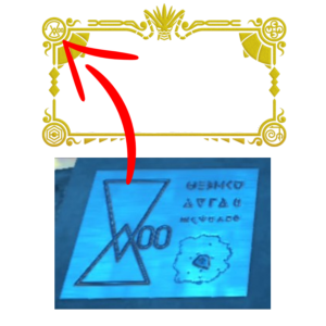 Lors de la visite des tréfonds, Bruyer perdit de vue l’équipe d’exploration. Retrouvé inconscient par celle-ci, il eut le vague souvenir d’avoir parlé à quelqu’un dans un lieu inconnu. Ayant pour seules preuves ses notes, il se demandait quand est-ce qu’il aurait pu les noter et s’il avait réellement rencontré quelqu’un. Encore une fois, on retrouve ce symbole sur les logos des jeux.