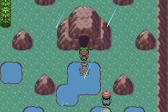 Lisez les inscriptions en haut de cette salle (leur signification n'a pas vraiment d'importance, faites juste A). Mettez Wailord en premier dans votre équipe et Relicanth en dernier puis relisez les inscriptions, la terre tremble. Sortez.
