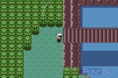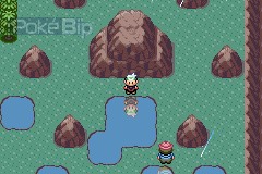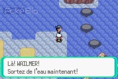À l'est de la ville, un sbire qui entraîne ses Wailmer nous bloque l'accès au Chenal 124. Il y a une crique à côté accessible en surfant. N'y allons pas pour le moment.