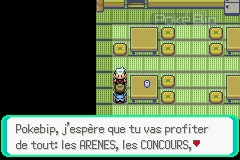 La réceptionniste nous offre une Boîte Pokébloc. Nous pouvons maintenant participer au concours, utiliser les mixeurs sur le côté pour créer des pokéblocs à partir de baie, et enfin,