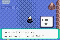 Tout au bout, nous faisons la découverte d'une petite grotte. À l'intérieur, nous retrouvons le submersible volé à Poivressel par la Team Aqua. Nous pouvons remonter à la surface en nous placant à côté de lui.