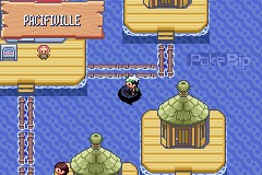 Les maisons de Pacifiville sont construites sur des supports en bois qui flottent sur l'eau. Cette ville n'a rien de particulier et ne contient même pas de Boutique Pokémon.