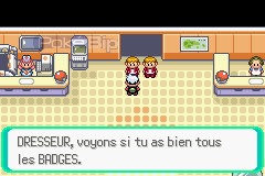 Deux dresseurs doivent vérifier avant si l'on possède bien tous les badges de la région. Une fois fait, ils nous ouvrent la voie. Avançons et laissons notre destin s'accomplir.