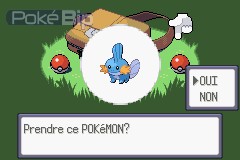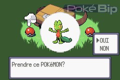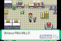 Ni une, ni deux, on se précipite vers sa sacoche. On y trouve alors 3 Pokéball, la première contenant le Pokémon Plante Arcko, le seconde, le Pokémon Feu Poussifeu, et la dernière, le Pokémon Eau Gobou.