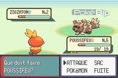 Afin de gagner en expérience, on décide de combattre le Pokémon. Après quelques attaques Griffe, le Zigzaton se retrouve K.O et le match se termine.