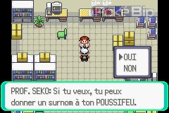 Pour nous remercier de notre aide, le Professeur Seko nous offre le Pokémon que nous avions choisi pour le combat (à savoir dans notre cas, Poussifeu). Il nous demande ensuite si l'on souhaite lui donner un nom. Cela nous permet d'avoir une relation plus intime avec notre Pokémon.