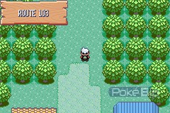 La première route qui se dresse devant nous, est la Route 101. C'est une petite route sans grande importance. Il n'y a aucun objet et aucun dresseur. La seule particularité que nous offre cette route est que c'est la toute première du jeu où l'on peut croiser des Pokémon sauvages dans les Hautes Herbes, comme nous montre la photo de droite.