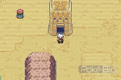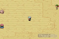 Maintenant que nous pouvons nous promener librement dans le désert, allons y faire un tour. Cette route est très spéciale. Lors de chaque combat, une tempête de sable occasionnera des dégâts à tous les Pokémon qui ne sont pas de type Sol, Roche ou Acier. Mieux vaut donc prévoir tout un stock de Potion.