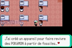Pour pouvoir faire revivre notre fossile, dirigeons nous vers Mérouville. Un scientifique au deuxième étage de la société Devon Sarl nous propose de ramener notre Pokémon à la vie. Confions lui notre fossile puis quittons la pièce.