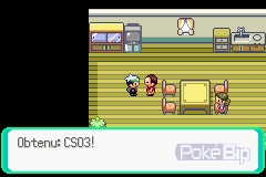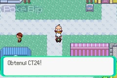 Pour nous remercier d'avoir aidé son fils à capturer son tout premier Pokémon, il nous offre la très utile CS03 Surf. Cette CS est, pour ne pas dire la plus importante, mais la plus intéressante de toutes les CS. En apprenant la capacité Surf à l'un de nos Pokémon, nous pourrons naviguer sur les océans en toute liberté, et ainsi accéder à de nouveaux lieux.