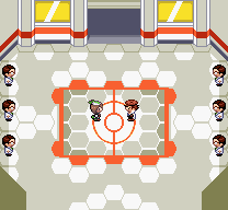 Les combats ont lieu en séries de 7, comme à la Tour de Combat de Rubis/Saphir. Le comptoir de gauche vous permet de participer aux combats Solo, le comptoir de droite aux combat Duo. Sam ne peut être affronté qu'en combat Solo.