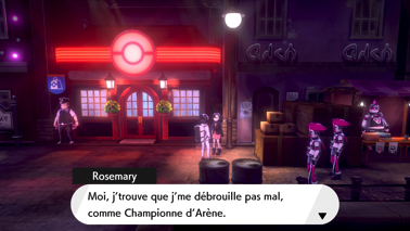 Lorsque vous avez fini l'histoire post-ligue (dont la capture de Zacian/Zamazenta, et le combat final contre Nabil), Rosemary voudra prendre sa revanche tous les jours contre vous à Smashings.