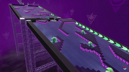 L'Arène d'Old Chister est différente selon la version que vous possédez. Elle est spécialisée dans le type Combat dans Épée et dans le type Spectre dans Bouclier. La mission reste néanmoins la même dans les deux versions : elle consiste à rentrer dans une soucoupe lâchée sur une plateforme inclinée et atteindre la ligne d'arrivée en contrôlant le manège. La soucoupe avance naturellement sous l'effet de la gravité... Contournez donc les obstacles (murs) en faisant tourner le joystick pour faire changer la direction de la soucoupe, des flippers qui vous poussent vers le haut vous aideront à vous débloquer de certaines situations !Arène d'Old Chister dans Épée